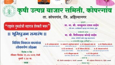 कोपरगावात राष्ट्रसंत तुकडोजी महाराज शेतकरी भवन भूमिपूजन व विकासकामांचे रविवारी लोकार्पण