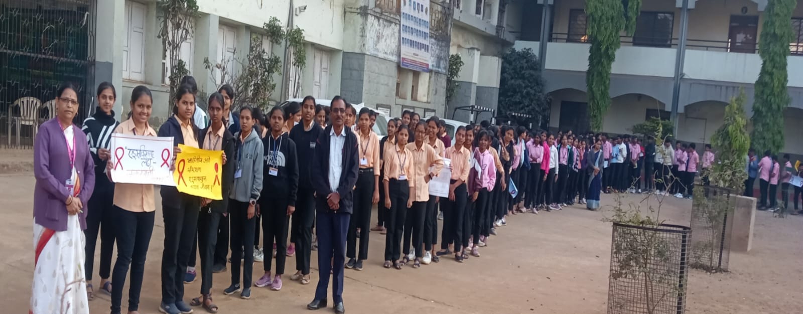 प्राचार्यांनी विद्यार्थ्यांना एड्सविषयी जागरूक राहण्याचे आणि समाजातील संक्रमित व्यक्तींबद्दल समज व सहानुभूती ठेवण्याचे आवाहन केले. तसेच एचआयव्ही संसर्गाची कारणे, प्रतिबंधक उपाय, सुरक्षित वर्तन, उपचारपद्धती आणि मोफत ART सेवांची माहिती विद्यार्थ्यांना सुलभ पद्धतीने दिली. एड्सविषयी पसरलेल्या अफवा, भीती आणि सामाजिक भेदभाव दूर करण्यासाठी वैज्ञानिक दृष्टीकोन ठेवण्याचे तसेच संक्रमित व्यक्तींसोबत भेदभाव न करण्याचे त्यांनी विशेष महत्त्व सांगितले. कार्यक्रमात विद्यार्थ्यांनी तयार केलेल्या पोस्टर प्रदर्शनाने सर्वांचे लक्ष वेधून घेतले. “एड्समुक्त समाज”, “माहिती म्हणजे संरक्षण” आणि “सुरक्षित वर्तन” या विषयांवरील संदेशमूल्य असलेली चित्रे व घोषवाक्ये उठावदार ठरली. तसेच निबंध स्पर्धा ही घेण्यात आली. याशिवाय विद्यार्थ्यांनी सादर केलेल्या जनजागृती नाटिका, घोषवाक्य स्पर्धा, आणि रेड रिबन मोहीम यामुळे कार्यक्रमाला विशेष उत्साह लाभला.