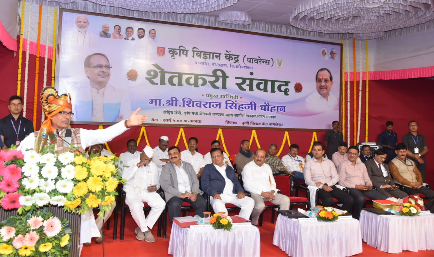 मंत्री शिवराज सिंह चौहान यांनी बाभळेश्‍वर येथील कृषी विज्ञान केंद्रामध्‍ये येवून शेतक-यांशी संवाद साधला. तसेच केंद्र सरकारच्‍या माध्‍यमातून कृषी आणि ग्रामीण विकास मंत्रालयाच्‍या योजनां बाबतची माहीती त्‍यांनी उपस्थित शेतक-यांना दिली. लाडक्‍या बहीणीला लखपती दिदि करण्‍याबाबत केंद्र सरकार कुठेही कमी पडणार नसल्‍याचे आश्‍वासनही त्‍यांनी दिले.