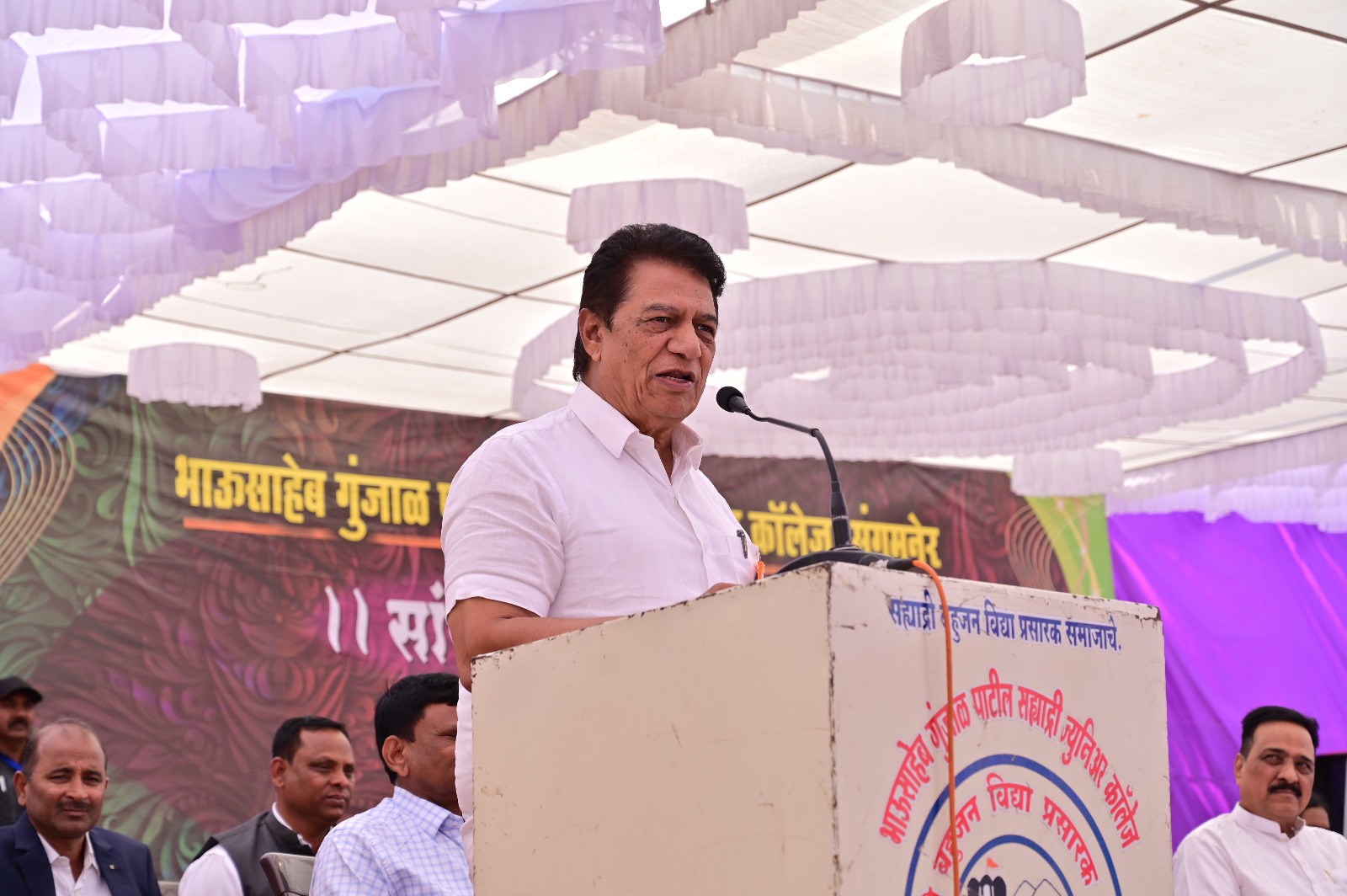 अध्यक्षीय भाषणात डॉ.सुधीरजी तांबे साहेब यांनी विद्यार्थ्यांच्या सुप्त गुणांना वाव देण्यासाठी स्नेहसंमेलनासारख्या उपक्रमांचे महत्त्व अधोरेखित केले. विद्यार्थ्यांनी वैयक्तिक विकासाबरोबरच समाजाशी आपली नाळ कायम जोडून ठेवावी, असे आवाहन त्यांनी केले. यावेळी संस्थेचे सचिव सुमंतजी कोल्हे यांनी विद्यार्थ्यांना गुणवत्ता व शिस्त याबद्दल मार्गदर्शन केले. माजी नगराध्यक्षा दुर्गाताई तांबे यांनी विद्यार्थ्यांच्या कला गुणांना वाव देण्यासाठी व कौतुक करण्यासाठी हा कार्यक्रम असतो असे नमूद केले. कार्यक्रमाचे प्रमुख पाहुणे सुधाकर जोशी साहेब यांनी विद्यार्थ्यांनी शालेय जीवनापासून बँकिंग व्यवस्था समजावून घ्यावी तसेच शालेय स्तरावर सुद्धा एखादी बचत बँक सुरू करून विद्यार्थ्यांना मदत करता आली तर आपण सहकार्य करण्यास तयार आहोत असे नमूद केले. संस्थेचे संचालक प्रा.बाबा खरात सर यांनी आपल्या उगवत्या भाषणामध्ये कॉलेजच्या विविध उपक्रमांच कौतुक केले. सर्व शिक्षक व शिक्षकेतर सेवकांचे कौतुक केले.