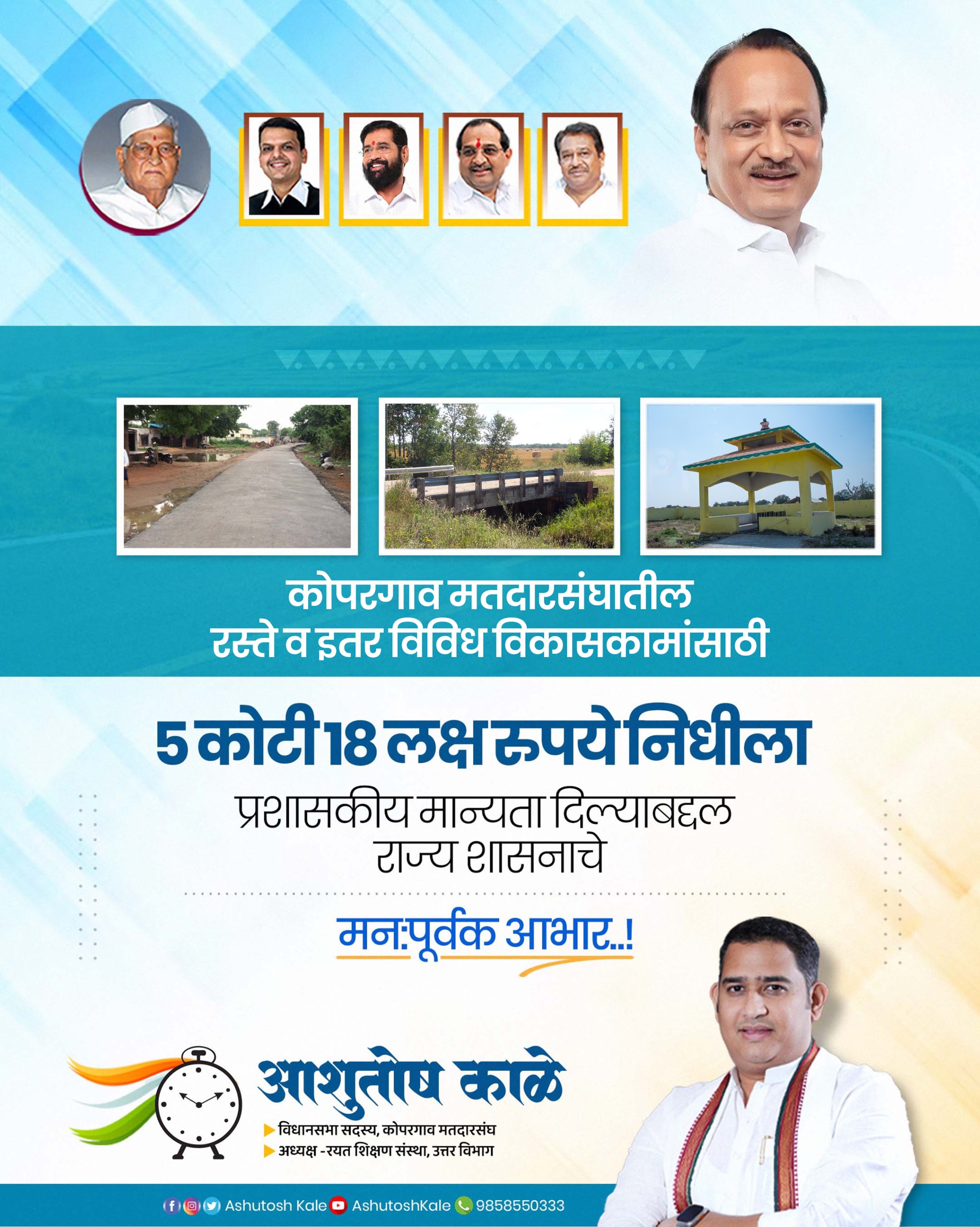 कोपरगाव मतदारसंघातील अनेक ग्रामीण भागातील रस्ते नव्याने विकसित होणार असून स्थानिक नागरिकांच्या दैनंदिन जीवनमानात त्याचा निश्चित फायदा होईल. लवकरच निविदा प्रक्रिया पूर्ण होवून रस्त्यांच्या कामांना प्रत्यक्षात सुरुवात होईल. रस्त्यांशिवाय विकास अशक्य असून चांगले रस्ते हे प्रत्येक गावाच्या प्रगतीचे प्रतीक आहेत. त्यामुळे ग्रामीण भागातील प्रत्येक गावासाठी चांगले रस्ते निर्माण करणे हे माझे ध्येय आहे. यापूर्वीही मतदारसंघातील बहुतांश रस्त्यांची कामे पूर्ण केली असून काही कामे प्रगती पथावर आहेत तर काही विकासकामे मंजुरीच्या प्रतीक्षेत आहे. यापुढील काळातही नागरीकांना ज्या रस्त्यांची कामे होणे अपेक्षित आहे त्या सर्वच रस्त्यांसाठी महायुती शासनाकडून निधी आणण्यासाठी मी प्रयत्नशील आहे. या विकास कामांना प्रशासकीय मंजुरी मिळाल्याने ग्रामविकासाचा वेग आता अधिक वाढणार असल्याचा विश्वास आ.आशुतोष काळे यांनी व्यक्त केला आहे.