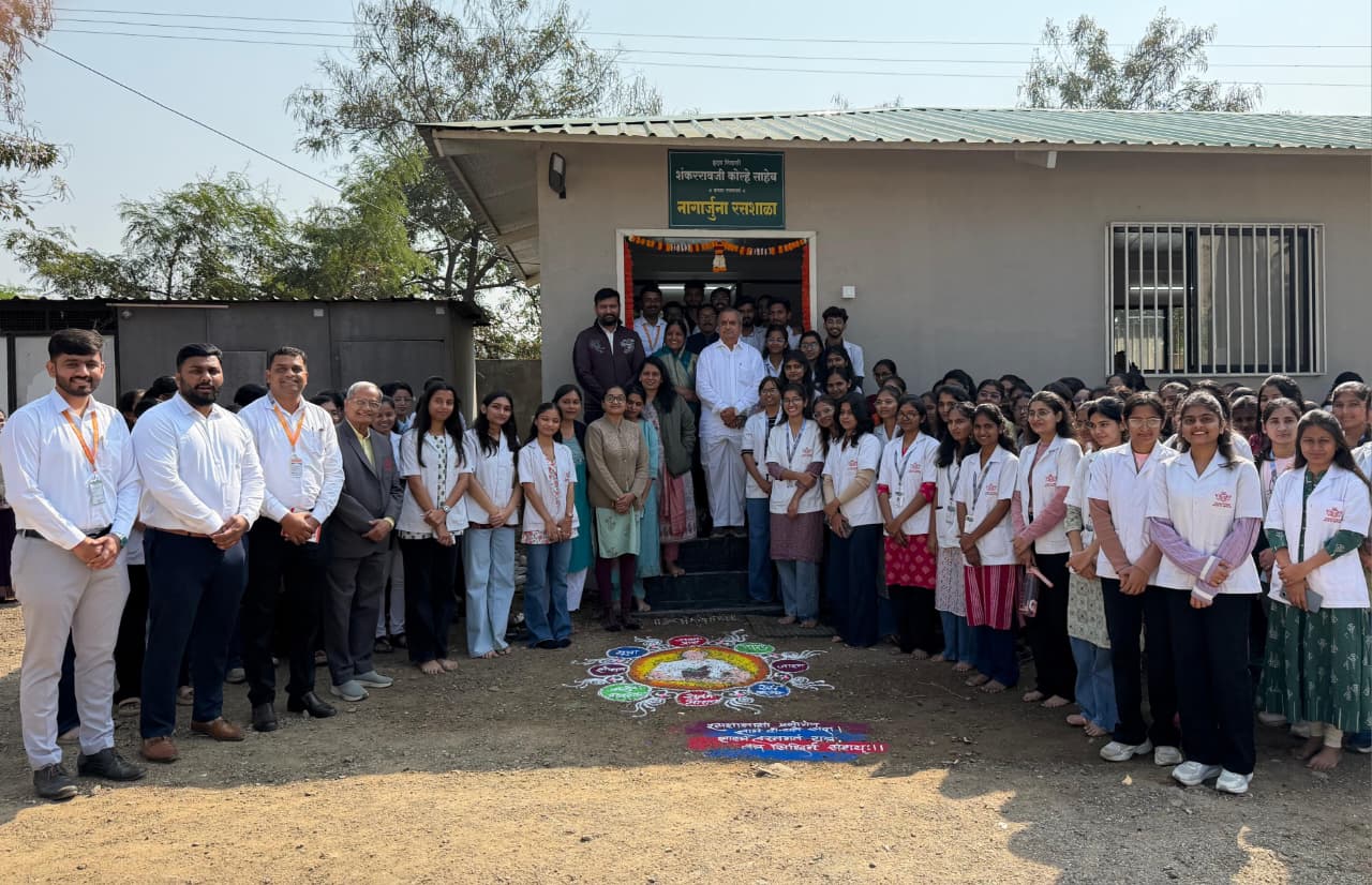 कोपरगाव विजय कापसे दि ८ जानेवारी २०२६: संजीवनी ग्रुप ऑफ इन्स्टिट्यूट्स  संचलित संजीवनी आयुर्वेद महाविद्यालय अँड  रिसर्च सेंटरमध्ये नववर्षाचे  औचित्य साधत संस्थेचे संस्थापक माजी मंत्री स्व. शंकरराव कोल्हे यांच्या स्मृतिप्रीत्यर्थ ‘नागार्जुन रसशाळेचा’ शुभारंभ मोठ्या  उत्साहात पार पडला. संजीवनी ग्रुपचे अध्यक्ष  नितिनदादा कोल्हे  कलावती नितिनदादा कोल्हे यांच्या हस्ते या रसशाळेचे उद्घाटन करण्यात आले, अशी माहिती महाविद्यालयाच्या वतीने प्रसिद्धीपत्रकाद्वारे देण्यात आली.
