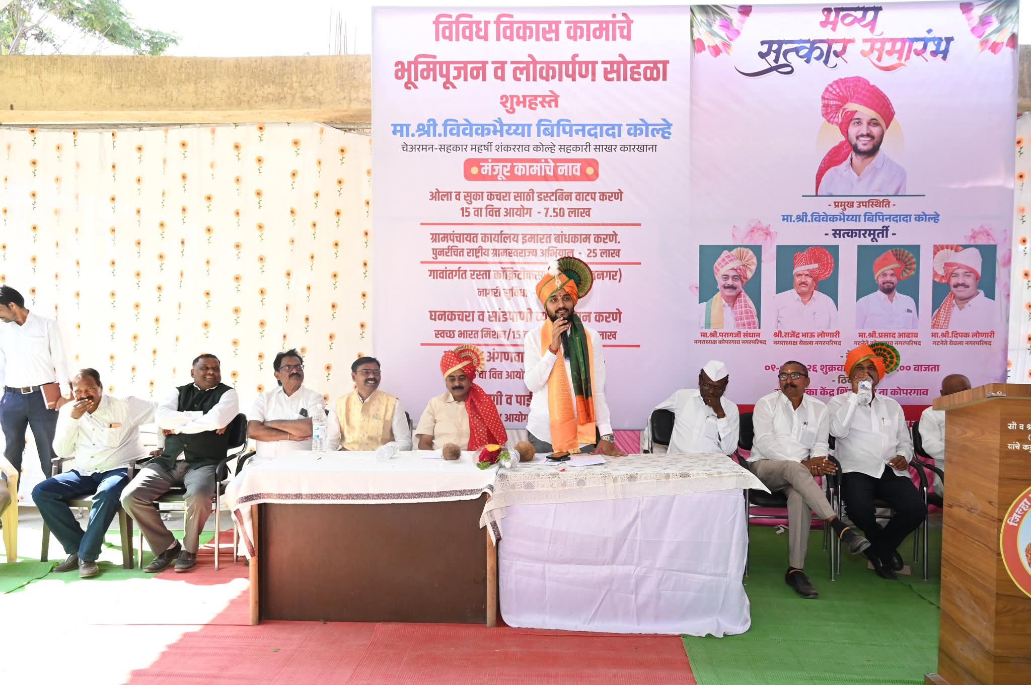 कोपरगाव तालुक्यातील शिंगणापूर गावात विविध विकासकामांचे भूमिपूजन व लोकार्पण सोहळा युवानेते विवेकभैय्या कोल्हे यांच्या हस्ते संपन्न झाला यावेळी ते बोलत होते.यावेळी कार्यक्रमाच्या अध्यक्षस्थानी यादवराव संवत्सरकर होते. याप्रसंगी विवेकभैय्या कोल्हे तसेच लोकनियुक्त नगराध्यक्ष पराग संधान व गटनतेपदी प्रसाद आढाव यांची निवड झाल्याबद्दल त्यांचा शिंगणापूर ग्रामस्थांच्या वतीने सत्कार करण्यात आला. नगरसेवक जितेंद्र रणशूर,संतोष शिंदे, औद्योगिक वसाहतचे उपाध्यक्ष केशवराव भवर, मच्छिंद्र लोणारी,मेडिकल असोसिएशनचे अध्यक्ष गणेश वाणी,शिंगणापूर ग्रामपंचायतचे लोकनियुक्त सरपंच डॉ.विजय काळे,उपसरपंच सौ. रत्नाताई श्याम संवत्सरकर, कैलासराव संवत्सरकर, राजेंद्र लोणारी, लक्ष्मीकांत संवत्सरकर, रंगनाथ संवत्सरकर, भीमा संवत्सरकर, भाऊलाल कुऱ्हे, दत्तू भाऊ संवत्सरकर, भाऊसाहेब वाघ, काशिनाथ आढाव, बाळासाहेब संवत्सरकर, जालिंदर गोर्डे, मनोज इंगळे, अशोक वराट, शेखर कुऱ्हे, जालिंदर संवत्सरकर, समाधान कुऱ्हे, सुभाषराव संवत्सरकर, दिगंबर कुऱ्हे, सुनील भोसले, गणेश राऊत, प्रमोद संवत्सरकर, जालिंदर आढाव, ग्रामविकास अधिकारी अविनाश पगारे,सुरेश सोनपसारे, बाबासो चितळे, प्रसाद आढाव, भगवान संवत्सरकर, श्याम संवत्सरकर, दिलीप आढाव, तसेच ग्रामपंचायत व विविध कार्यकारी सोसायटीचे सर्व सदस्य, शिंगणापूर गावचे सर्व ज्येष्ठ श्रेष्ठ नागरिक बंधू-भगिनी मोठ्या संख्येने उपस्थित होते.जाहिरात