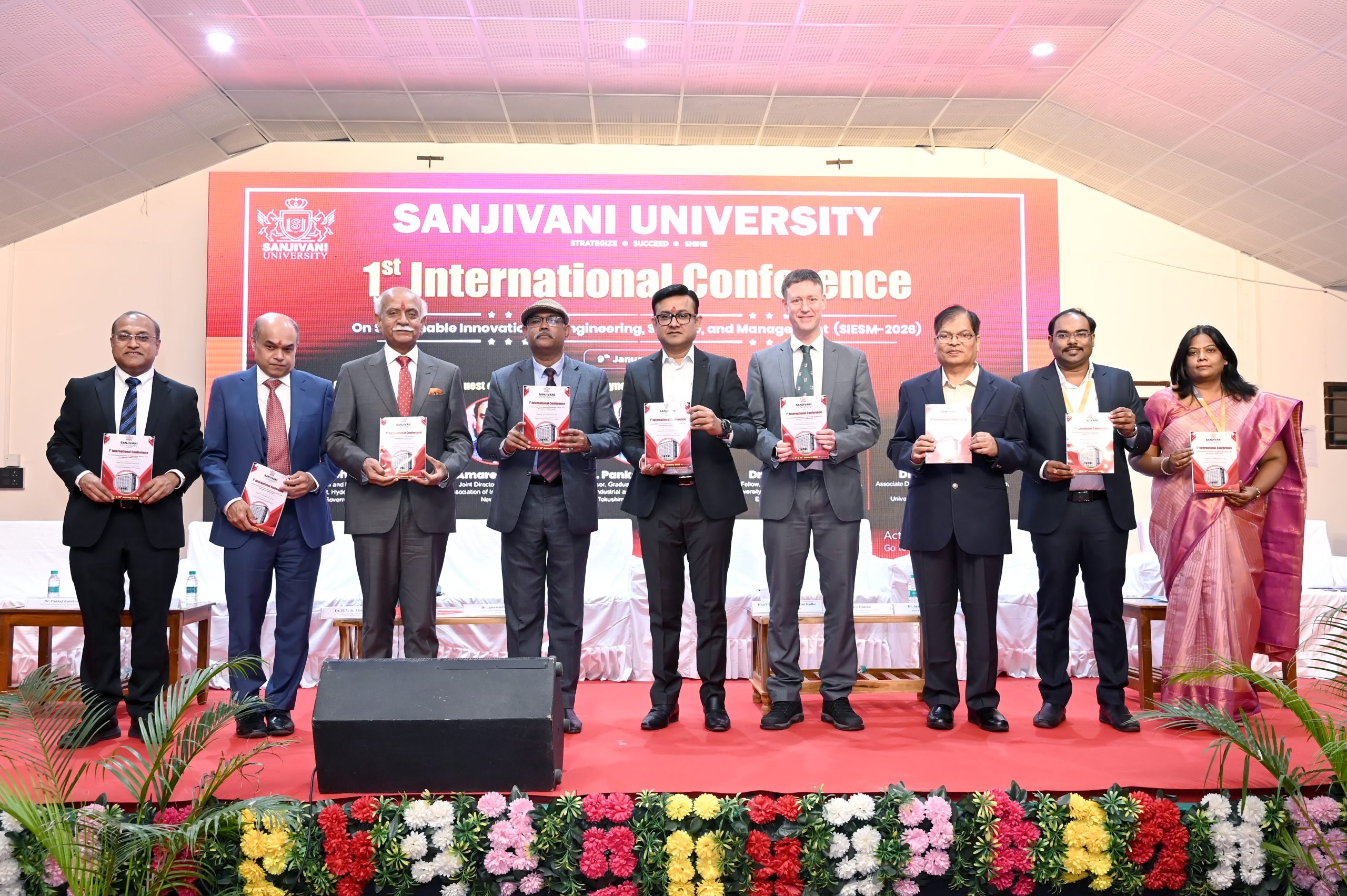 संजीवनी युनिर्व्हसिटी आयोजीत ‘सस्टेनेबल इनोव्हेशन इन इंजिनिअरींग, सायन्स अँड मॅनेजमेंट’ या विषयावरील आंतरराष्ट्रीय परीषदेच्या उद्घाटन प्रसंगी प्रमुख पाहुणे म्हणुन डॉ. बी.व्ही.आर. मोहन रेड्डी बोलत होते. संजीवनी युनिर्व्हसिटीचे प्रेसिडेंट श्री अमित कोल्हे यांनी परीषदेचे अध्यक्षस्थान भुषविले. यावेळी सन्माननिय अतिथी म्हणुन संयुक्त संचालक-संशोधन संघटना, भारतीय विद्यापीठे, नवी दिल्लीचे डॉ. अमरेंद्र पाणी, टोकुशिमा युनिर्व्हसिटी जपानचे प्राद्यापक डॉ. पंकज कोईंकर, युनिर्व्हसिटी ऑफ ऑक्सफर्ड अँड कोर्स डायरेक्टर, इंग्लंडचे डॉ. अजित जावकर, युनिर्व्हसिटी ऑफ चेस्टर (युके)चे डीन डॉ. अलेक्स फेन्टॉन, सुजीवनी युनिर्व्हसिटीचे व्हाईस चांसलर डॉ. ए.जी.ठाकुर, डीन कविथा राणी, संशोधन संचालक डॉ. पी. विलिअम व्यासपीठावर उपस्थित होते. यावेळी सर्व मान्यवरांच्या हस्ते ‘अमुर्त स्मरणिकेचे’ प्रकाशन झाले. या परीषदेमध्ये एकुण २५० रिसर्च पेपर्स सादर करण्यात आले होते. विविध ठिकाणचे प्राद्यापक व विद्यार्थ्यांची उपस्थिती उल्लेखनिय होती.