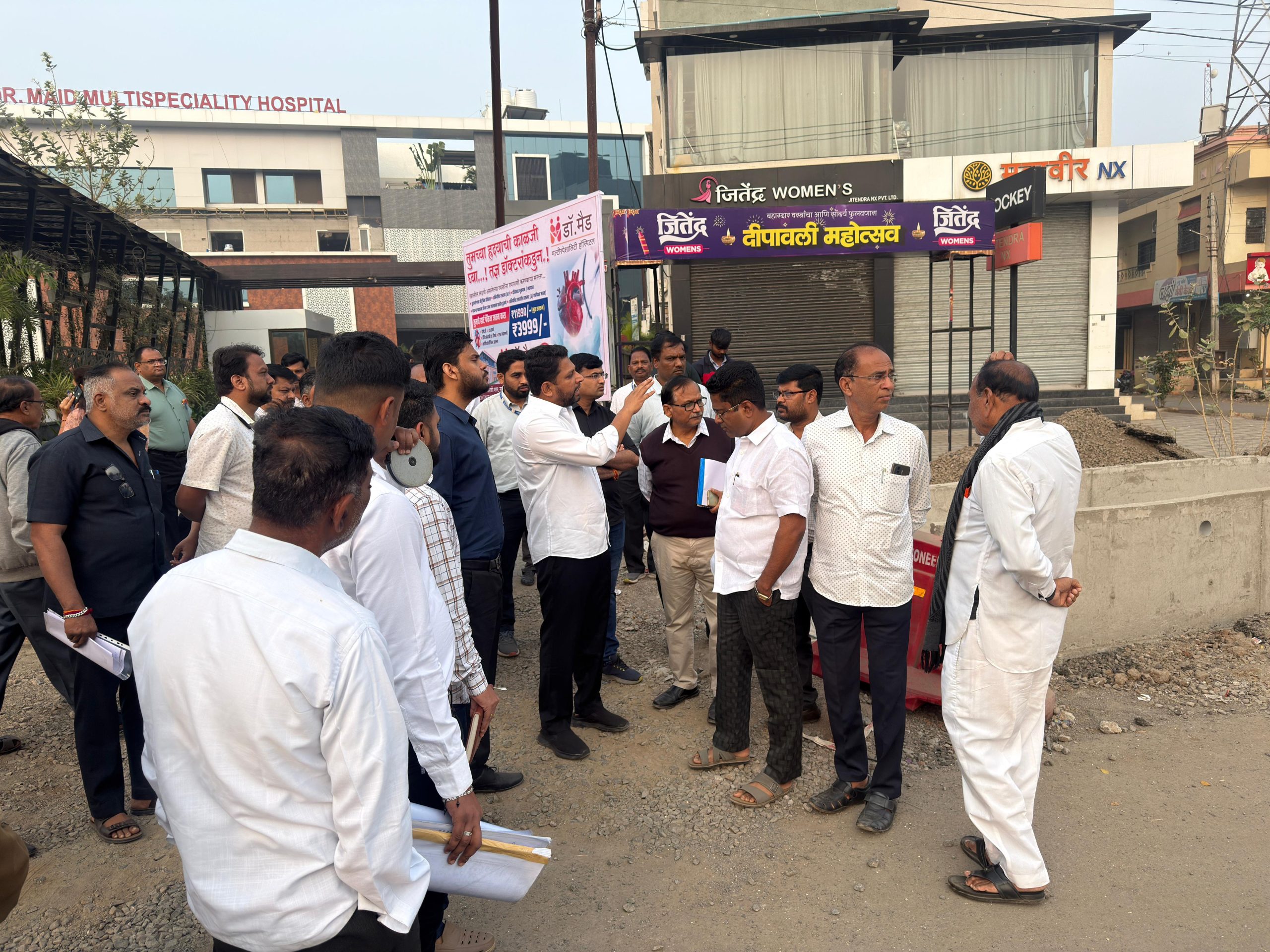 नगर–मनमाड महामार्गावरील गटार कामांमुळे व्यापारी व नागरिकांमध्ये निर्माण झालेल्या चिंतेची गंभीर दखल घेत, संबंधित कामांना तात्काळ स्थगिती देत सुधारित आराखडा सादर करण्याचे स्पष्ट निर्देश देण्यात आले. राहता शहराचा विकास हा नियोजनबद्ध, सर्वसमावेशक आणि कुणालाही त्रास न होता व्हावा, या भूमिकेतून डॉ. सुजय विखे पाटील यांनी आज शहरातील प्रमुख विकास प्रकल्पांची प्रत्यक्ष पाहणी करत सखोल आढावा घेतला.
