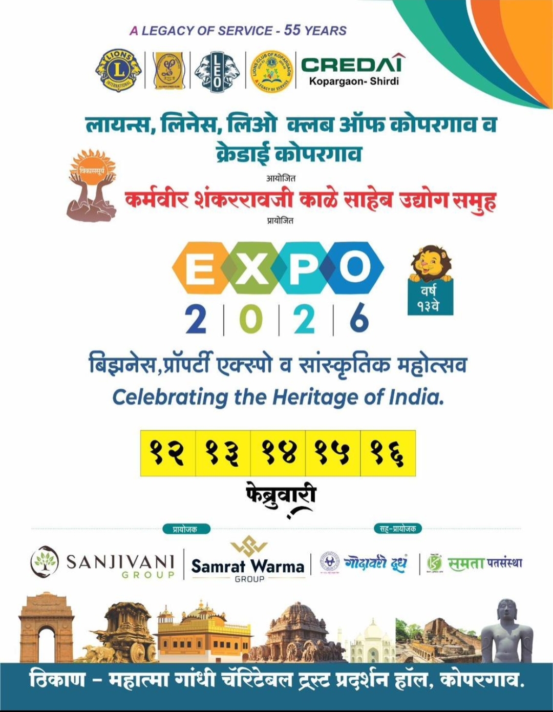 कोपरगाव विजय कापसे दि १२ फेब्रुवारी २०२६– बहुचर्चित कोपरगाव येथे लायन्स, लिनेस व लियो क्लब ऑफ कोपरगाव तसेच क्रेडाई कोपरगाव यांच्या वतीने आयोजित व कर्मवीर शंकरराव काळे उद्योग समूह प्रायोजित बिझनेस २०२६ उत्सवास आज गुरुवार दि १२ फेब्रुवारी पासून मोठ्या जल्लोषात थाटामाटात शुभारंभ होणार आहे.लायन्स