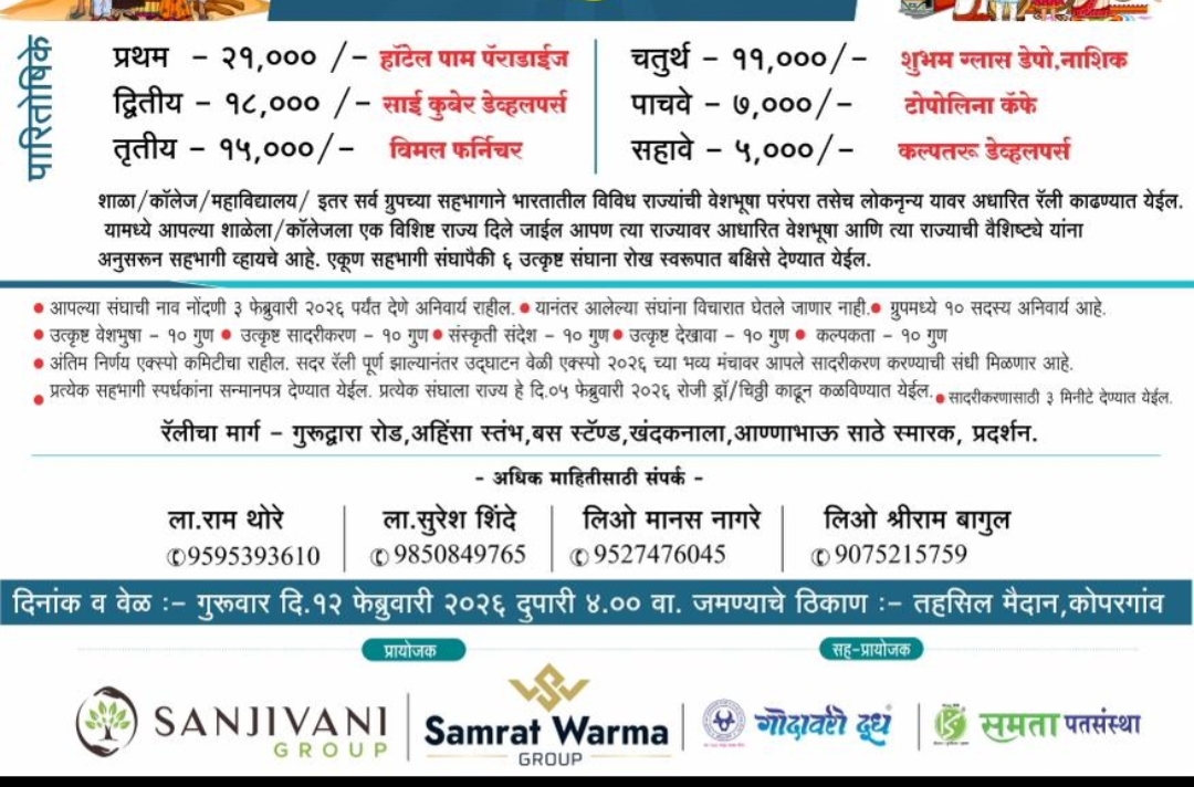 या बिझनेस एक्स्पोची सुरुवात उत्सव कोपरगावचा वारसा भारतीय संस्कृतीचा यानुसार भारतातील विविध राज्यातील वेशभूषा, परंपरा, लोकनृत्य अशा वेगवेगळ्या कार्यक्रमाच्या सादरीकरणाने संपूर्ण कोपरगाव शहरातून भव्य रॅली द्वारे होणार आहे सदर रॅली ची सुरुवात दुपारी ठीक ४ वाजता तहसील मैदान येथून होऊन गुरुद्वारा रोड,अहिंसा स्तंभ, बस स्टँड, खंदक नाला, आण्णाभाऊ साठें स्मारक मार्गे महात्मा गांधी प्रदर्शन म्हणजेच लायन्स बिझनेस एक्स्पोच्या ठिकाणी समारोप होणार आहे.जाहिरात