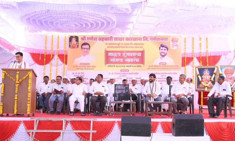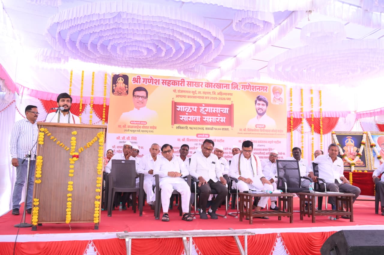 श्री गणेश सहकारी साखर कारखान्याच्या सन 2025- 26 या गळीत हंगामाची सांगता माजी मंत्री थोरात यांच्या अध्यक्षतेखाली व संजीवनीचे अध्यक्ष विवेक कोल्हे यांच्या हस्ते झाली. त्याप्रसंगी श्री थोरात बोलत होते. याप्रसंगी गणेश कारखान्याचे चेअरमन सुधीर लहारे व्हा. चेअरमन विजय दंडवते, माजी चेअरमन ॲड. नारायणराव कार्ले, साईबाबा संस्थानचे माजी विश्वस्त डॉ. एकनाथ गोंदकर, शिवाजीराव लहारे, कार्यकारी संचालक जी. बी. शिंदे, संगमनेरचे कार्यकारी संचालक जगन्नाथ घुगरकर, संजीवनीचे जनरल मॅनेजर दिवटे, ॲड . पंकज लोंढे, धनंजय गाडेकर, नगरसेवक शशिकांत लोळगे, विक्रांत दंडवते यांच्यासह गणेश कारखान्याचे संचालक मंडळ, माजी संचालक, सभासद, शेतकरी, ऊस तोड ठेकेदार, कारखान्याचे अधिकारी, कामगार मोठ्या संख्येने उपस्थित होते.जाहिरात
