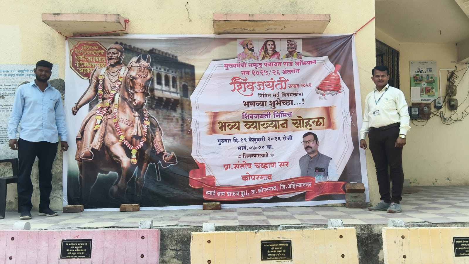 तर या प्रसंगी शिवव्याख्याते प्रा. संतोष चव्हाण यांनी शिवाजी महाराजांचे बालपण, शिक्षण, संस्कार, गड- किल्ले,युद्धनीती,पुरोगामी विचार, सर्वधर्मसमभाव, गनिमी कावा, विश्वासू सहकारी आणि महिलांबद्दल चे विचार मांडले. छत्रपती शिवाजी महाराजांचा संपूर्ण जीवनक्रम, घटनाक्रम उपस्थित समोर मांडला. तसेच मुख्यमंत्री समृद्ध पंचायतराज अभियान सन २०२५-२६ अंतर्गत गावाने सहभाग घेतलेला असून शासनाचे निकष,अटी व शर्ती प्रमाणे ग्रामपंचायतीला सहकार्य करावे तसेच आपल्या गावाला ५ कोटी रुपयांचे बक्षीस मिळवण्यासाठी गावातील ग्रामपंचायत कार्यकारी मंडळ, आजी-माजी पदाधिकारी, होतकरू तरुण मित्र मंडळ, महिला बचत गटाच्या सदस्या, वारकरी भजनी मंडळातील सदस्य,ज्येष्ठ नागरिक तसेच जिल्हा परिषद शाळा, अंगणवाडी,आरोग्य विभाग व इतर सर्व शासकीय विभागांनी व ग्रामस्थांनी स्वतः ला झोकून देऊन टीमवर्क काम करावे, असे आवाहन केले.