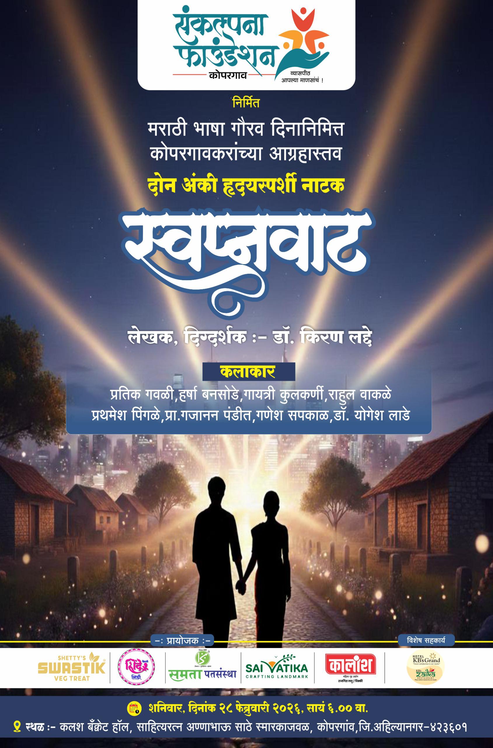 कोपरगावात स्वप्नवाट या दोन अंकी हृदयस्पर्शी नाटकाचा प्रयोग