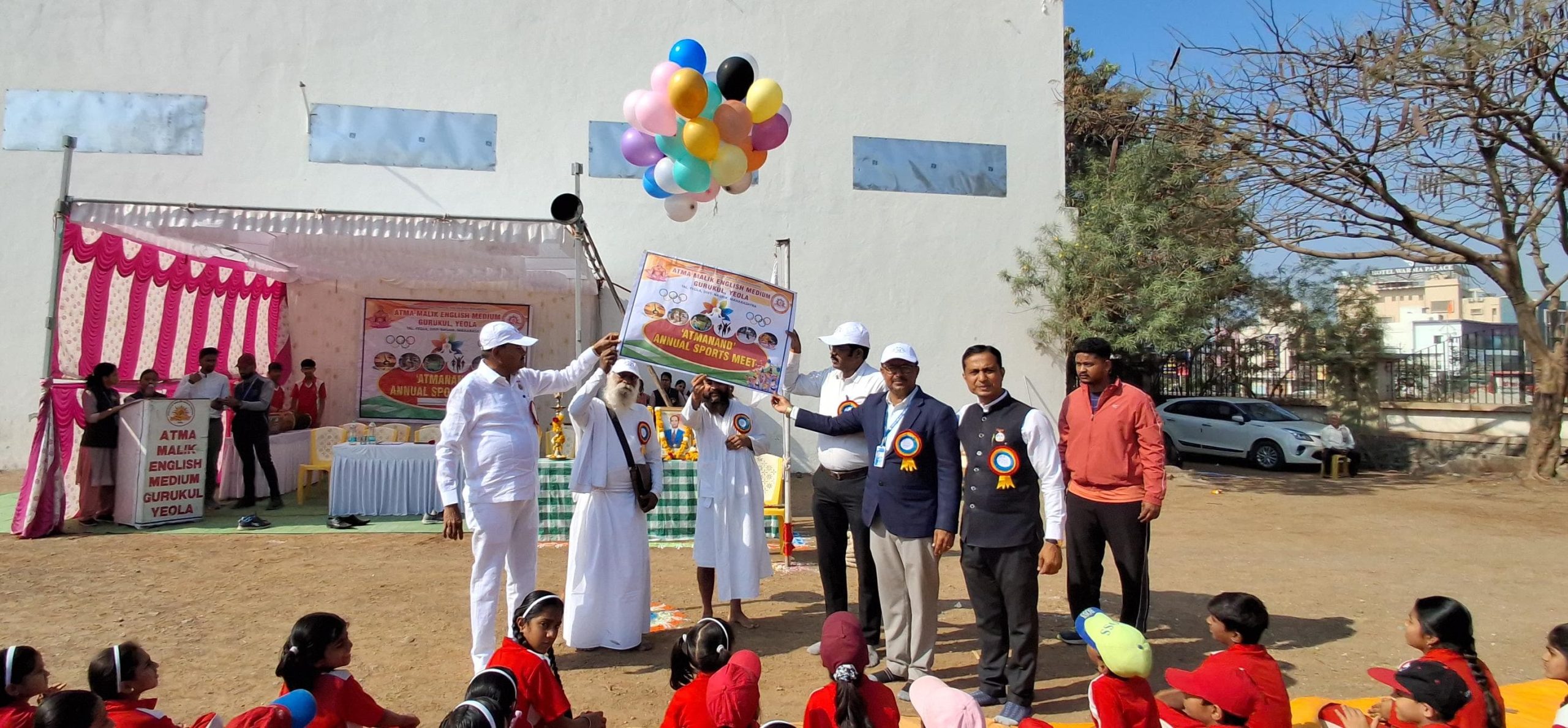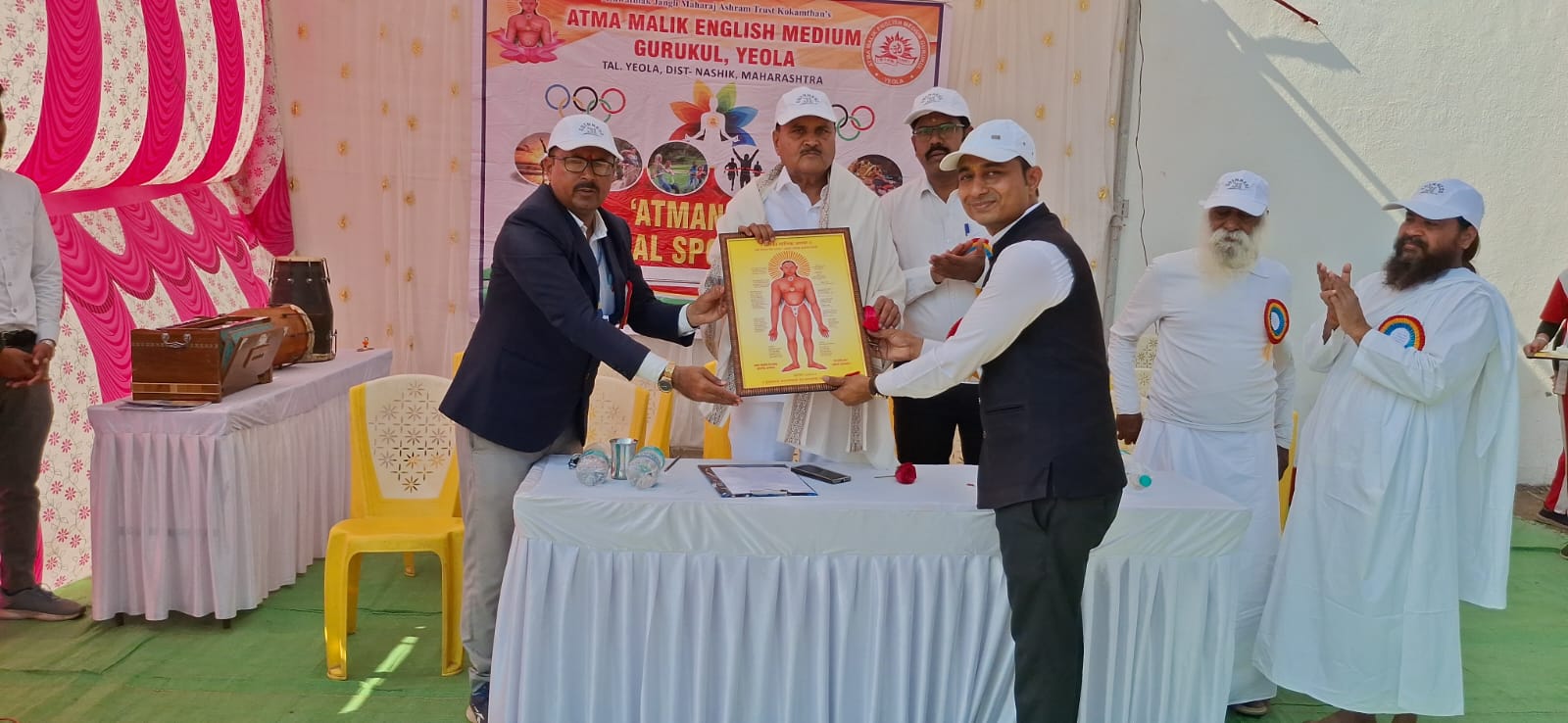 येवला विजय कापसे दि २४ फेब्रुवारी २०२६-विश्वात्मक जंगली महाराज आश्रम ट्रस्ट कोकमठाण संचलित आत्मा मालिक इंग्लिश मीडियम येवला गुरुकुलाचे अध्यक्ष हनुमंत भोंगळे यांच्या मार्गदर्शन व प्रेरणेतून आत्मानंद वार्षिक क्रीडा महोत्सव २०२६ तालुका क्रीडा संकुल येवला येथे तालुका क्रीडा अधिकारी शिवप्रसाद घोडके तसेच हनुमंत भोंगळे, संत कंकाली बाबा, संत चरणदास महाराज, पुरणगाव गुरुकुलाचे प्राचार्य राजेश पाटील, येवला गुरुकुलाचे प्राचार्य तुषार कापसे यांच्या प्रमुख उपस्थितीत मोठ्या आनंदमय वातावरणात संपन्न झाला.