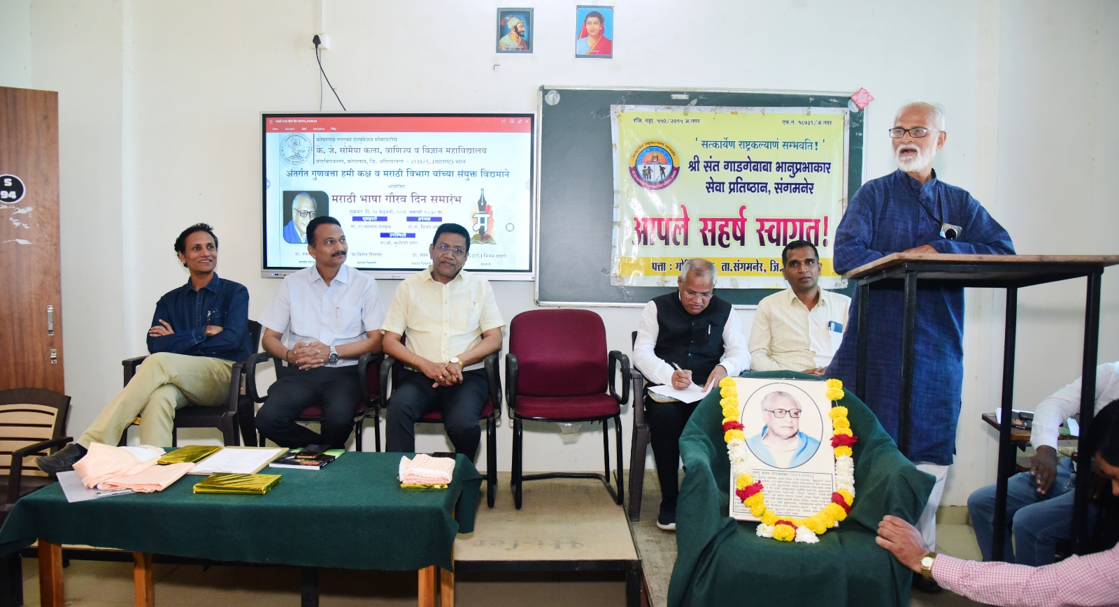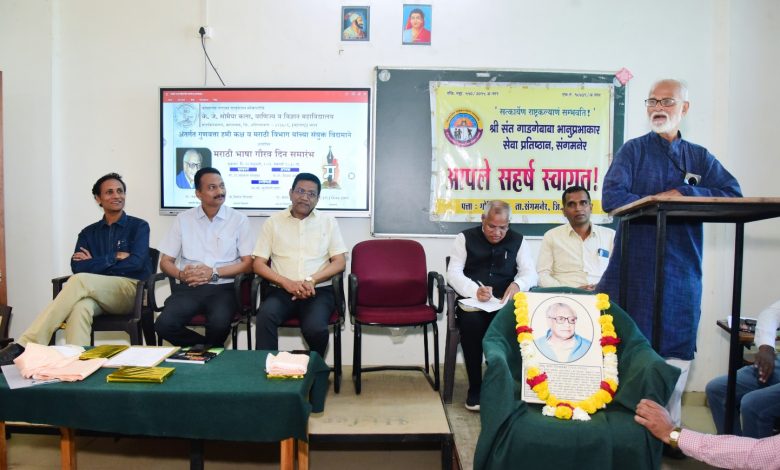 कोपरगाव विजय कापसे दि २७ फेब्रुवारी २०२६– “माझा मराठीचा बोलू कौतुके परी अमृता तेही पैजा जिंके” संत ज्ञानेश्वरांच्या या अभंगाने तसेच ‘नमने वाहून’ या कवीश्रेष्ठ कुसुमाग्रजांच्या कवितेने सुरुवात करून मराठी भाषेची समृद्ध परंपरा,विविध शिलालेख,संत-पंत आणि तंत साहित्याचे योगदान व महत्त्व विशद करतानाच विद्यार्थी हा उच्च शिक्षण क्षेत्रातील सर्वाधिक महत्त्वाचा घटक असून विद्यार्थ्यांशिवाय शिक्षकाला अर्थ उरत नाही असे प्रतिपादन मा.प्रा. चंद्रभान देशमुख यांनी केले. स्थानिक के.जे. सोमैया वरिष्ठ व के.बी.रोहमारे कनिष्ठ महाविद्यालयाच्या मराठी भाषा विभागाच्या वतीने आयोजित “मराठी भाषा गौरव दिनाचे” प्रमुख अतिथी म्हणून प्रा.देशमुख बोलत होते. अध्यक्षस्थानी संदीप रोहमारे होते. महाविद्यालय विकास समितीचे सदस्य सुधीर डागा, प्राचार्य डॉ. विजय ठाणगे,प्रा.संदीप सातपुते यांची याप्रसंगी प्रमुख उपस्थिती होती.