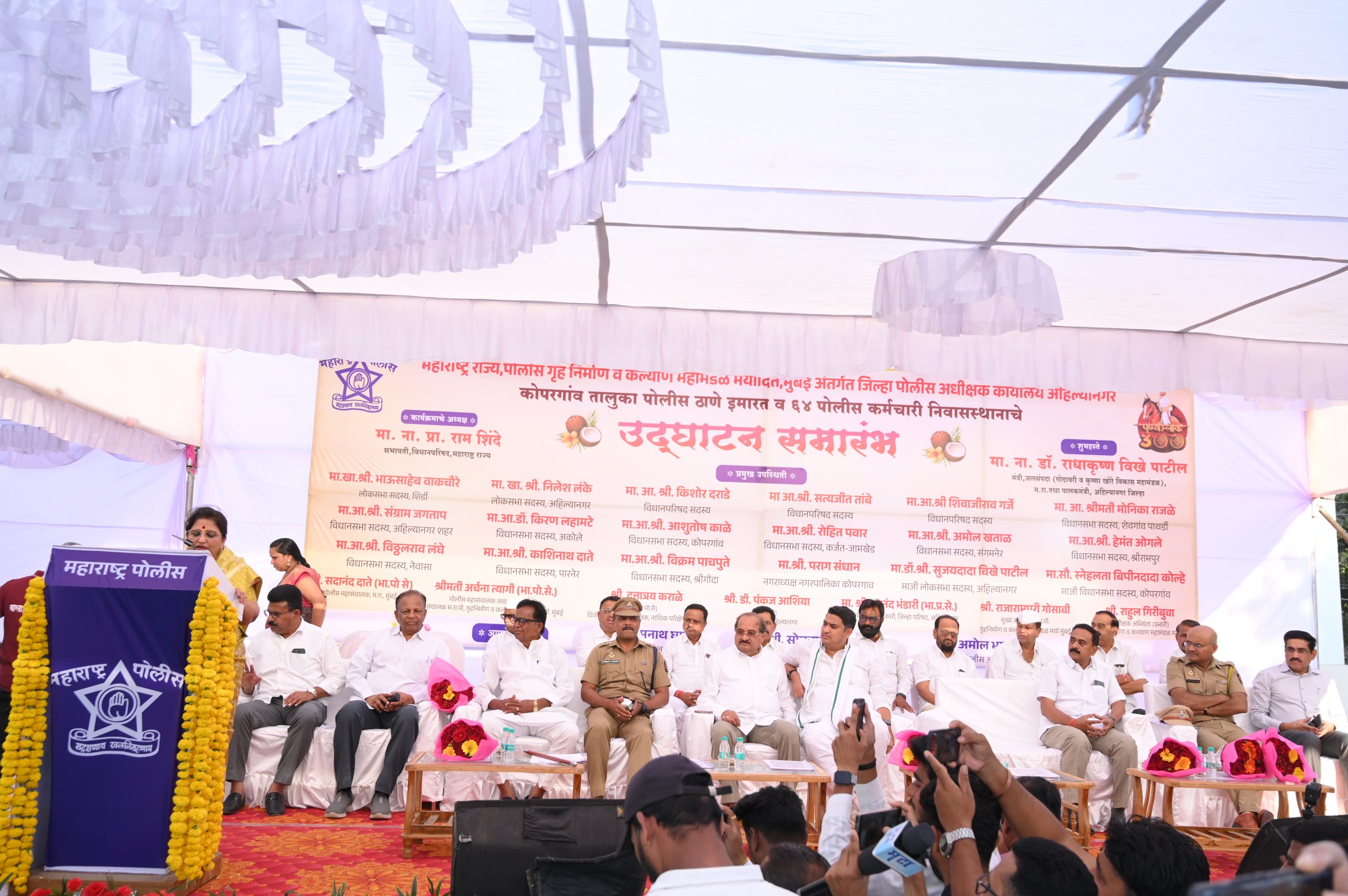 कोपरगाव विजय कापसे दि ३ मार्च २०२६–कोपरगाव तालुका पोलिस ठाणे इमारत आणि 64 पोलिस कर्मचारी निवासस्थानाचे उद्घाटन पालकमंत्री राधाकृष्ण विखे पाटील यांच्या हस्ते पार पडले.यावेळी मा.आ. स्नेहलताताई कोल्हे यांची प्रमुख उपस्थिती होती.