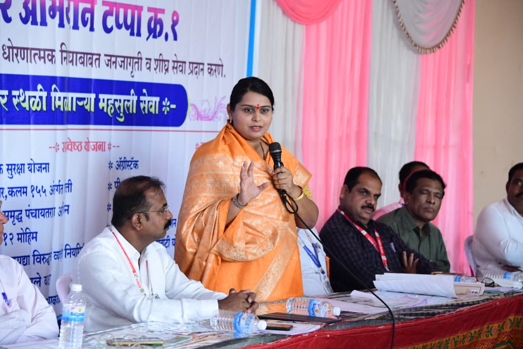 या शिबिरामध्ये महसूल, पंचायत समिती, कृषी विभाग, भूमी अभिलेख, महिला व बालविकास, आरोग्य विभाग, निराधार योजना, विविध दाखले तसेच शिधापत्रिका आदी कामे तातडीने मार्गी लावण्यात आली. ज्या कामांसाठी नागरिकांना वारंवार कार्यालयात जावे लागत होते ती कामे आता गावातच पूर्ण होत असल्याने नागरिकांनी समाधान व्यक्त केले. यावेळी सौ. चैतालीताई काळे यांच्या हस्ते नागरिकांना प्रतिनिधिक स्वरूपात विविध दाखले, रेशन कार्ड, आयुष्यमान भारत कार्ड, वारस व पोटखराबा नोंदी, कुळकायदा आदी दाखल्यांचे वाटप करण्यात आले. तहसीलदार महेश सावंत यांनी शासनाच्या विविध योजनांची माहिती देत संबंधित विभागांच्या अधिकाऱ्यांच्या मदतीने नागरिकांचे प्रश्न सोडवले.
