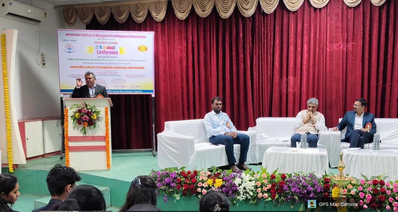 संगमनेर विजय कापसे दि १५ मार्च २०२६– अमेरिका इराण युद्धसह उद्योग क्षेत्रातील व्यावसायिक कौशल्य,व्यवस्थापन तंत्रज्ञान आणि जागतिक बाजारपेठेतील बदलत्या प्रवाहबद्दल अमृतवाहिनी एमबीए महाविद्यालयांमध्ये दोन दिवसीय राष्ट्रीय परिषद संपन्न झाली असून यामध्ये देशभरातील विविध तज्ञांनी उच्च शिक्षण, शाश्वत विकास आणि उद्योग क्षेत्रातील व्यावसायिक कौशल्य याबाबत मार्गदर्शन केले. या राष्ट्रीय परिषदेत देशभरातील 300 हून अधिक उद्योग तज्ञ आणि निवेदित उद्योजक यांनी सहभाग घेतला.