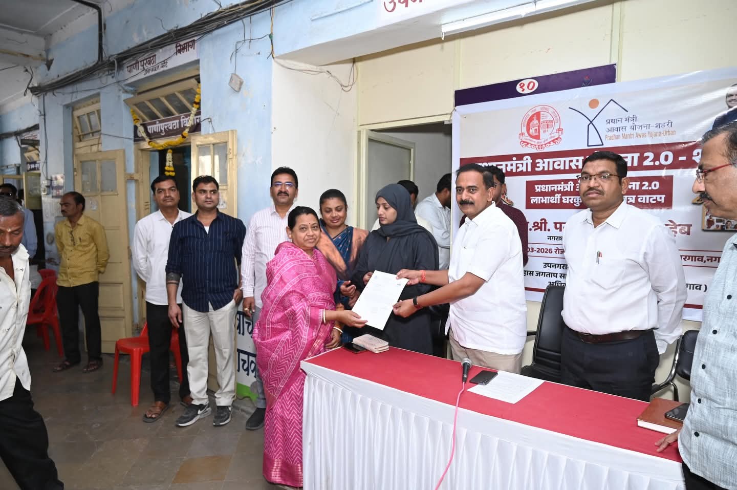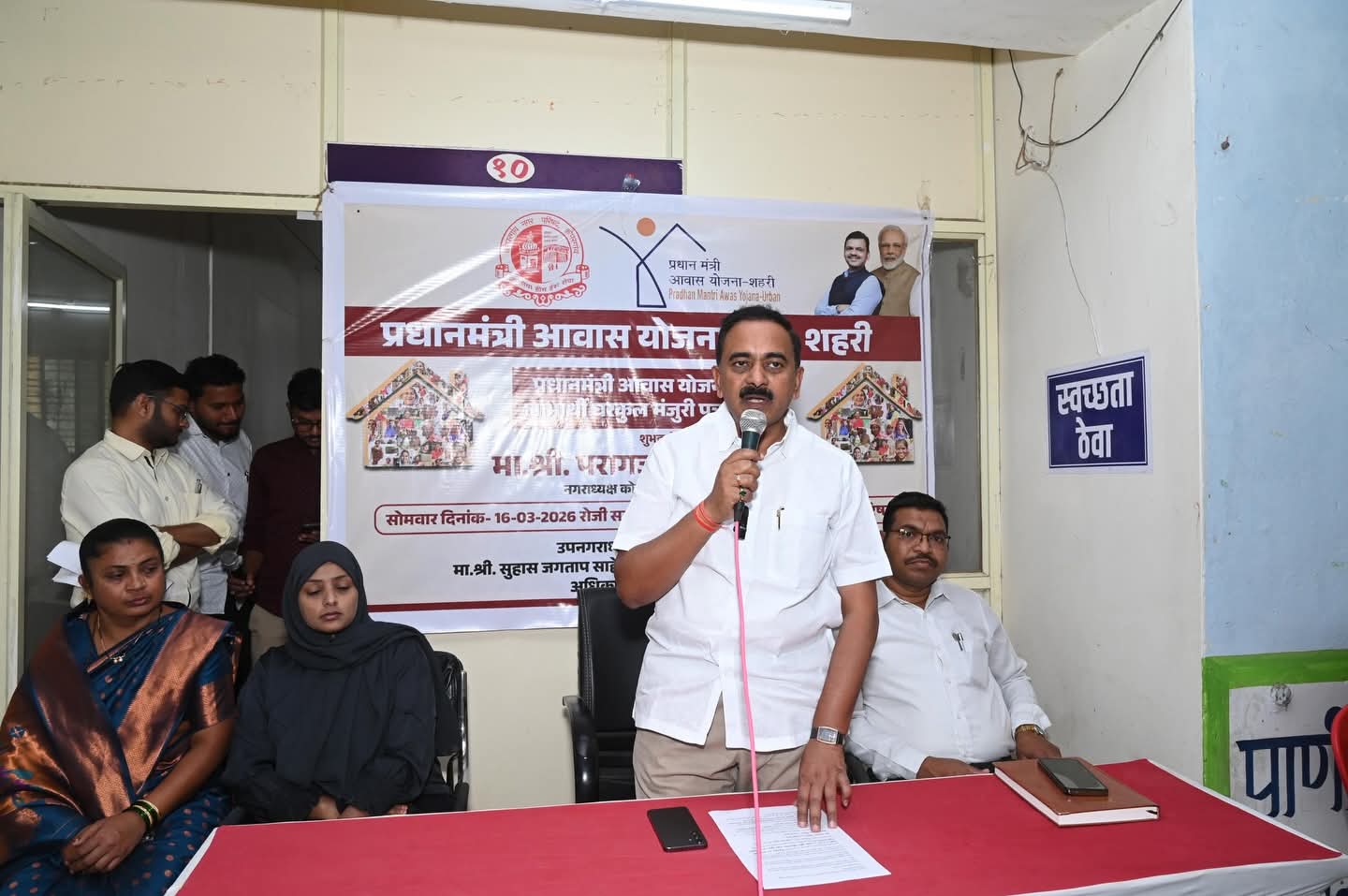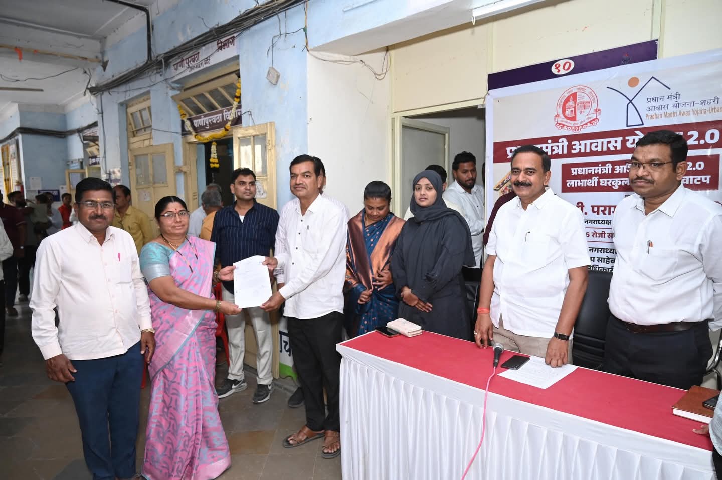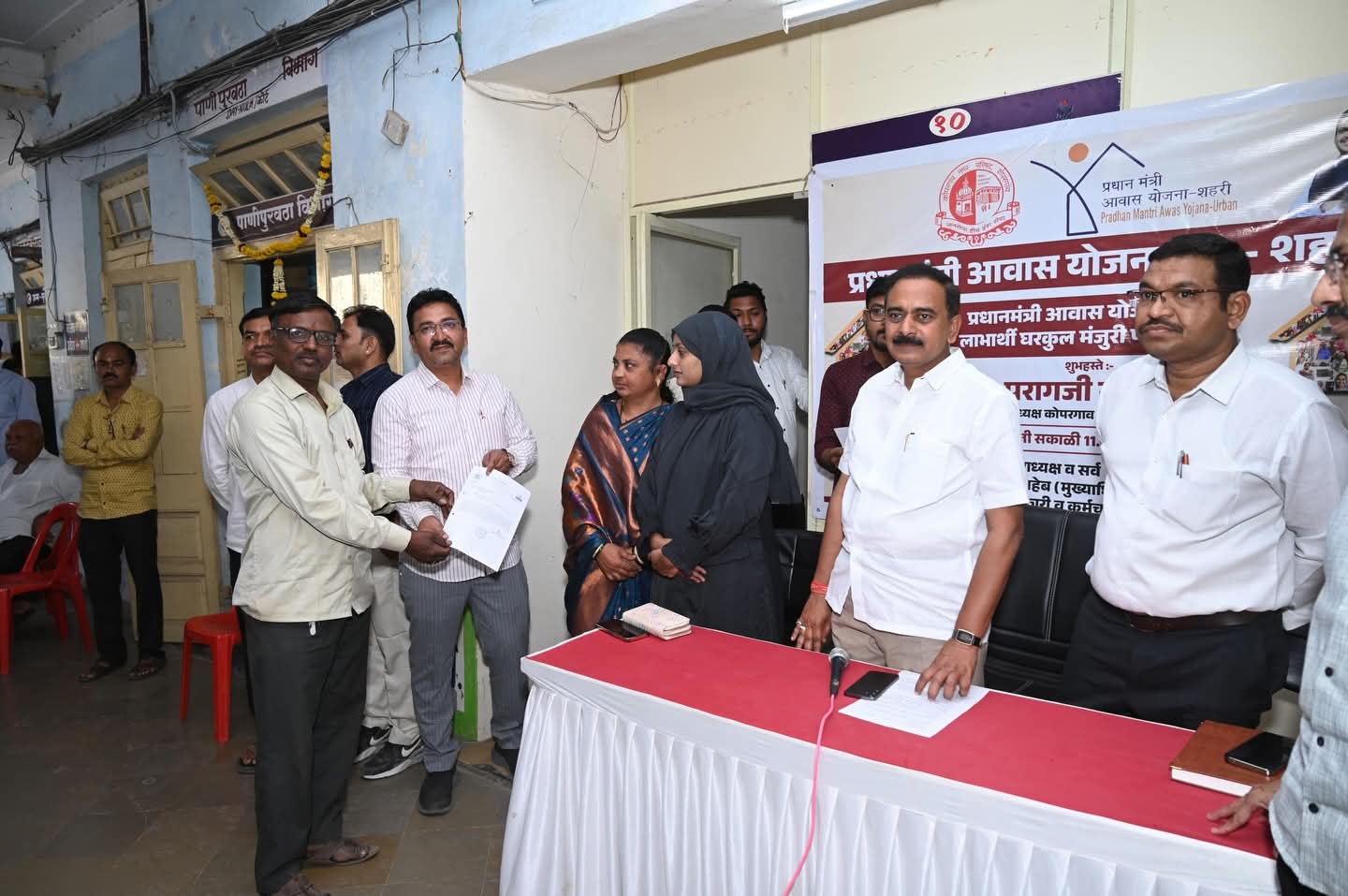यावेळी मुख्याधिकारी सुहास जगताप,उपमुख्याधिकारी पापडीवाल साहेब, बांधकाम सभापती निलोफरताई पठाण,महिला बालकल्याण समिती सभापती सविताताई मंजुळ,आरोग्य सभापती वैभव आढाव,गटनेते प्रसाद आढाव, नगरसेवक अतुलशेठ काले,संतोष शिंदे, अनिल आव्हाड,संजय उदावंत,फिरोज पठाण,पी एम ए वाय योजनेचे अधिकारी हर्षवर्धन सुराळकर, विशाल वर्हे व न .पा.अधिकारी व कर्मचारी वृंद हजर होते.