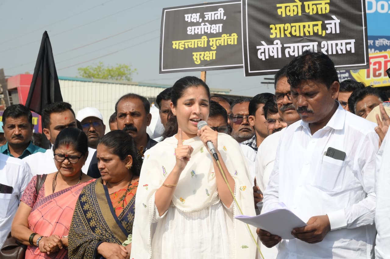 ॲसिड हल्ल्यातील चिमुकलीच्या न्यायासाठी तळेगाव फाटा येथे भव्य रस्ता रोको गुन्हेगाराला कठोर शिक्षा करा – डॉ.जयश्रीताई थोरात