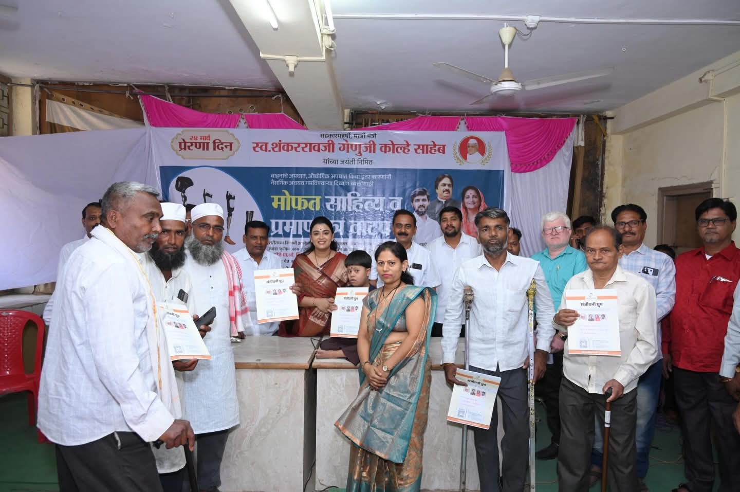 Kopargaon vijay kapse दि २२ मार्च २०२६-आम्हाला समाजातील प्रत्येक घटकाला न्याय मिळवून द्यायचा आहे, त्यांचे जीवन जगण्यासाठी योग्य ते साधन उपलब्ध करून द्यायचे आहे.यासाठी संजीवनी युवा प्रतिष्ठान तसेच पुणे येथील साधू वासवानी ग्रुपशी संलग्न होऊन युवा नेते विवेकभैय्या कोल्हे यांनी दिव्यांग बंधू आणि भगिनींना स्व.शंकरराव कोल्हे साहेब यांच्या जयंतीनिमित्त प्रेरणा दिन साजरा होतो.या निमित्ताने कृत्रिम अवयव मिळवून देण्याचा महत्त्वाचा उपक्रम कोपरगाव मतदारसंघात सुरू केला आहे. या उपक्रमाचा जास्तीत जास्त दिव्यांग बंधू आणि भगिनींनी येऊन लाभ घ्यावा.तसेच दिव्यांग बंधू-भगिनींना कुठल्याही प्रकारची अडचण असल्यास आमच्या संपर्क कार्यालयाशी संपर्क साधावा.दिव्यांग बांधवांच्या मदतीसाठी युवा नेते विवेकभैय्या कोल्हे यांच्यासह कोल्हे परिवार कायम तत्पर असल्याचे प्रतिपादन संजीवनी महिला बचत गटाच्या अध्यक्षा रेणुका विवेक कोल्हे यांनी केले.