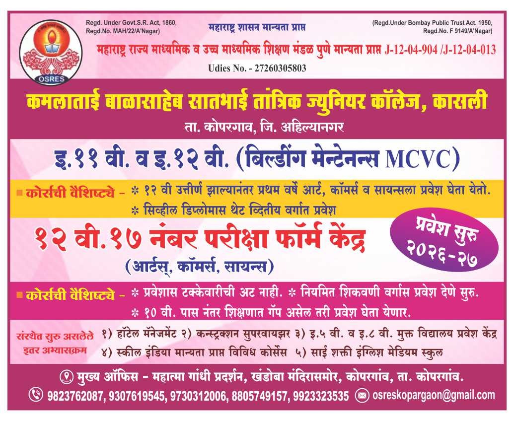 kopargaon vijay kapse दि २३ मार्च २०२६– श्री साईगाव पालखी सोहळा आयोजक, मुंबादेवी तरुण मंडळ, कोपरगाव यांच्या वतीने गुढीपाडवा ते श्रीराम नवमी पर्यंत आयोजित केल्या जाणाऱ्या भक्तिमय सत्संग सोहळ्या अंतर्गत या वर्षी श्री नवनाथ कथा सार आयोजित केले असून दररोज मोठ्या संख्येने भाविक ही कथा ऐकण्यासाठी गर्दी करत आहे.