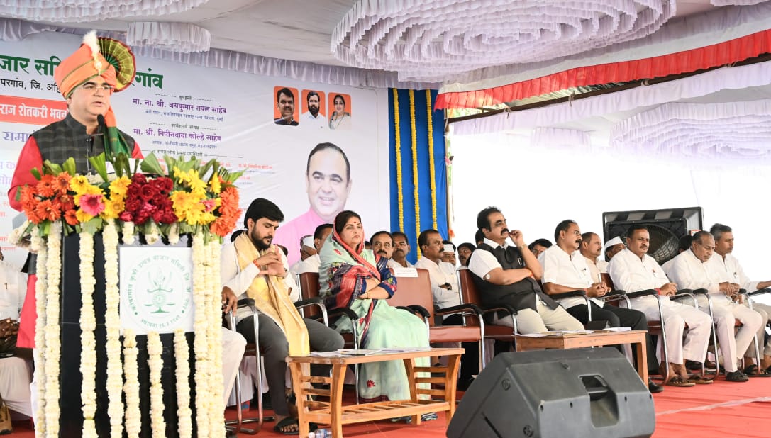 Kopargaon vijay kapse दि २९ मार्च २०२६ :- शेतकरी हा केवळ अन्नदाता नसून तो देशाच्या अर्थव्यवस्थेचा कणा आहे. शेतकऱ्याला सक्षम केल्यावरच राज्याची ग्रामीण अर्थव्यवस्था मजबूत होईल. याच दृष्टिकोनातून राज्यातील ३०६ पैकी जवळपास १९० कृषी उत्पन्न बाजार समित्यांमध्ये शेतकऱ्यांच्या निवाऱ्यासाठी सर्व सोयीसुविधांनी युक्त असे ‘राष्ट्रसंत तुकडोजी महाराज शेतकरी भवन’ उभारण्यात येत आहे. तसेच, शेतमालाला जागतिक बाजारपेठ उपलब्ध करून देण्यासाठी वाढवण बंदर परिसरात तब्बल १२०० एकर जागेवर पॅरिसच्या धर्तीवर जगातील सर्वात मोठी आंतरराष्ट्रीय कृषी बाजारपेठ उभारण्याचा महत्त्वाकांक्षी संकल्प शासनाने केला असल्याची माहिती पणन व राजशिष्टाचार मंत्री जयकुमार रावल यांनी आज येथे दिली.