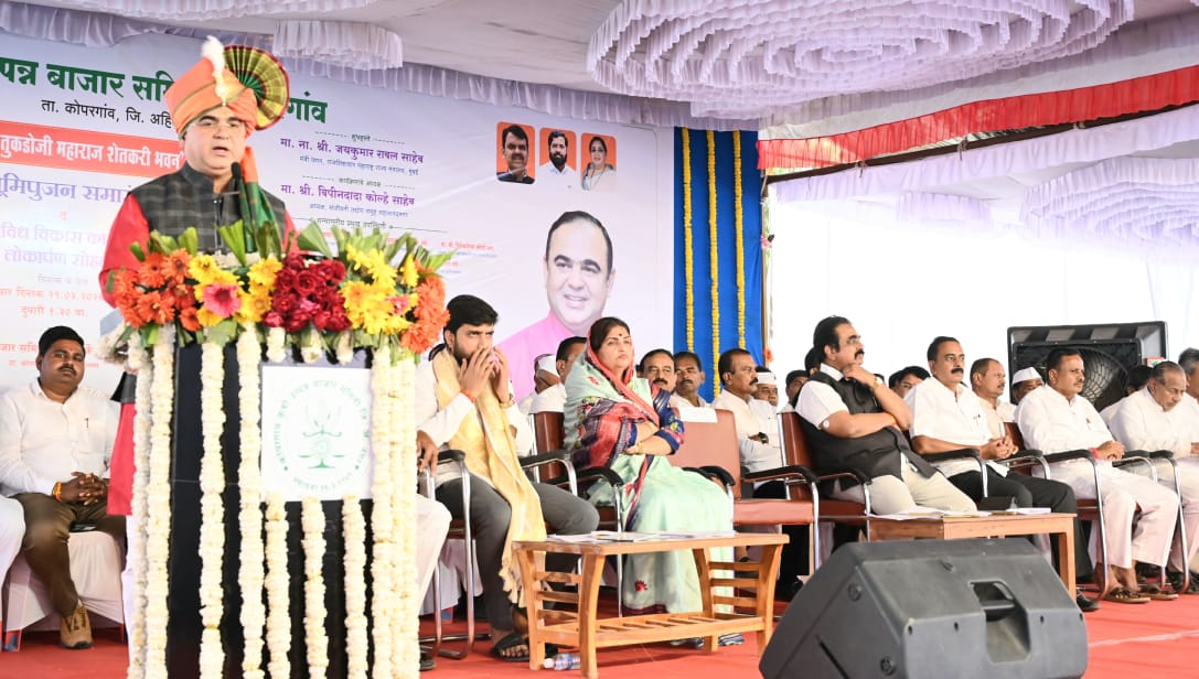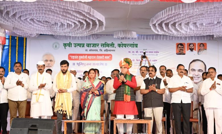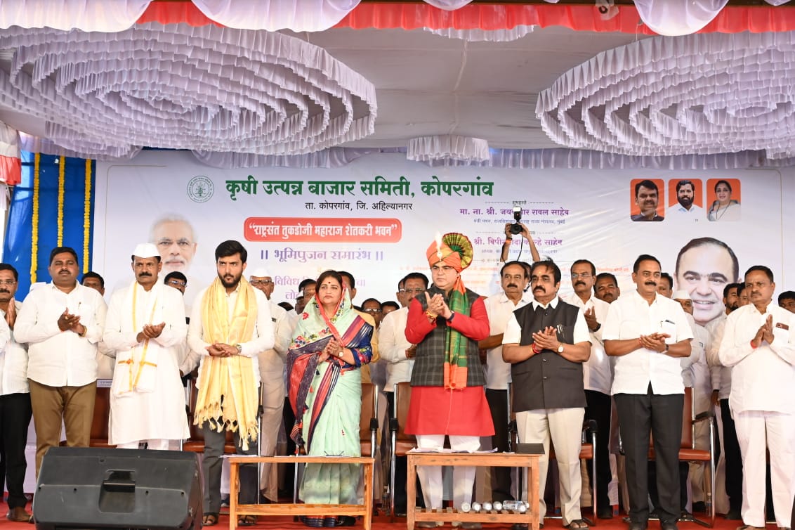 कोपरगाव कृषी उत्पन्न बाजार समितीच्या राष्ट्रसंत तुकडोजी महाराज शेतकरी भवनाचे भूमिपूजन व विविध विकासकामांच्या लोकार्पण सोहळ्याप्रसंगी ते बोलत होते. याप्रसंगी माजी आमदार स्नेहलता कोल्हे, संजीवनी उद्योग समूहाचे अध्यक्ष बिपीन कोल्हे, सहकार महर्षी शंकरराव कोल्हे सहकारी साखर कारखान्याचे चेअरमन विवेक कोल्हे, कोपरगावचे नगराध्यक्ष पराग संधान, कृषी उत्पन्न बाजार समितीचे सभापती साहेबराव रोहोम आदी उपस्थित होते.