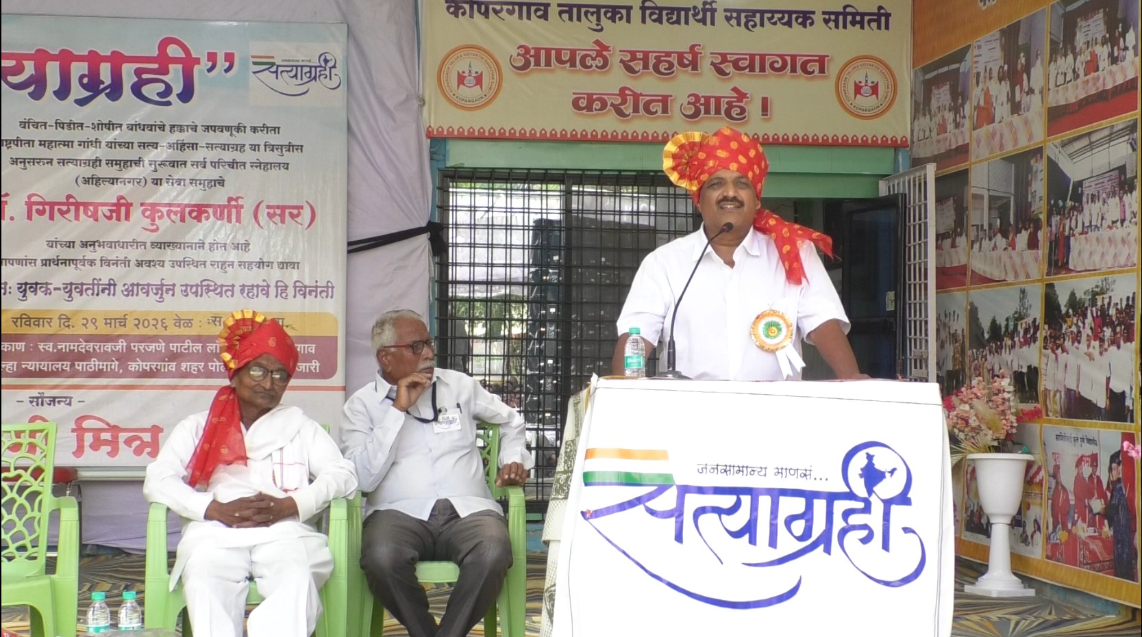 Kopargaon vijay kapse दि २९ मार्च २०२६– सध्याची सर्वच परिस्थिती विचित्र आहे. समाजकारण आणि राजकारण या दोन्ही ठिकाणी स्वार्थी आणि नाठाळांचे बहुमत आहे. अशा परिस्थितीत निरपेक्षपणे काम करणारी सत्याग्रही सारखी सेवाभावी संघटना लवकरच जिल्ह्या-जिल्ह्यातून राज्य पातळीवर पोहचेल असा विश्वास “स्नेहालय” या संस्थेचे अध्यक्ष व जेष्ठ समाजसेवक प्रा. डॉ. गिरीश कुलकर्णी यांनी व्यक्त केले.