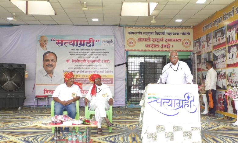 निस्वार्थी समाजसेवक रामदासअण्णा खैरे यांनी स्थापन केलेल्या “सत्याग्रही” या संस्थेचा शुभारंभ रविवारी दि. २९ मार्च रोजी कोपरगावच्या नामदेव परजणे पा. लॉ कॉलेजच्या पटांगणात झाला. त्यावेळी डॉ. गिरीश कुलकर्णी बोलत होते. “सत्याग्रही” संघटनेचे संस्थापक अध्यक्ष रामदास खैरे अध्यक्षस्थानी होते. सत्याचा आग्रह धरताना सत्तेला विरोध करावा लागतो. अन्याय अत्याचाराची चाड अनेकांना असते. अन्याय अत्याचारा विरोधात फक्त बोलून चीड व्यक्त करणारे मात्र प्रत्यक्ष सत्याग्रह करताना कच खातात. आपले सुखी आणि आरामी जीवन सोडून सत्याचा आग्रह धरणारे व त्यासाठी प्रसंगी सत्याग्रह करणारे खरे देशभक्त आहेत. असे गौरवोदगार डॉ. गिरीश कुलकर्णी यांनी काढले. सत्याग्रही संघटनेने हाती घेतलेल्या सर्व उपक्रमांना, आंदोलनाला सर्व प्रकारचे सहकार्य करण्याचे आश्वासन डॉ. गिरीश कुलकर्णी यांनी यावेळी दिले.