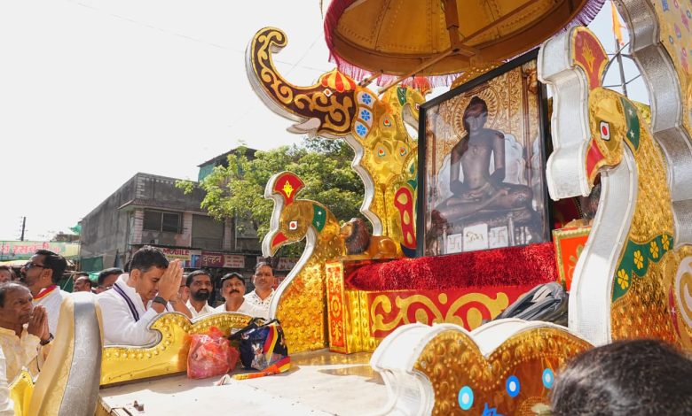 Kopargaon vijay kapse दि ३० मार्च २०२६– सत्य आणि अहिंसेची शिकवण देणारे भगवान महावीर यांची जयंती कोपरगाव शहरात मोठ्या उत्साहात साजरी करण्यात आली. जयंतीनिमित्त सकल जैन समाजाच्या वतीने कोपरगाव शहरात काढण्यात आलेल्या रथ यात्रेत सहभागी होवून आ.आशुतोष काळे यांनी भगवान महावीरांचे मनोभावे दर्शन घेतले.