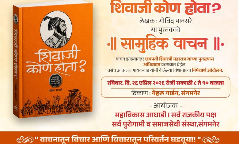 Sangmner vijay kapse दि २५ एप्रिल २०२६–हिंदवी स्वराज्याचे संस्थापक छत्रपती शिवाजी महाराज संपूर्ण जगाचे आराध्य दैवत आहे. सर्व समाजाला बरोबर घेऊन त्यांनी स्वराज्य निर्माण केले. संगमनेर मधील सर्व राजकीय पक्ष व पुरोगामी संघटना यांच्या वतीने रविवार दिनांक 26 मार्च 2026 रोजी सकाळी 8 ते 10 या वेळेत नेहरू गार्डन संगमनेर येथे कॉम्रेड गोविंद पानसरे लिखित शिवाजी कोण होता या पुस्तकाचे सामूहिक वाचन करण्यात येणार आहे. यानंतर छत्रपती शिवाजी महाराजांच्या पुतळ्याला अभिवादन करण्यात येणार आहे.
