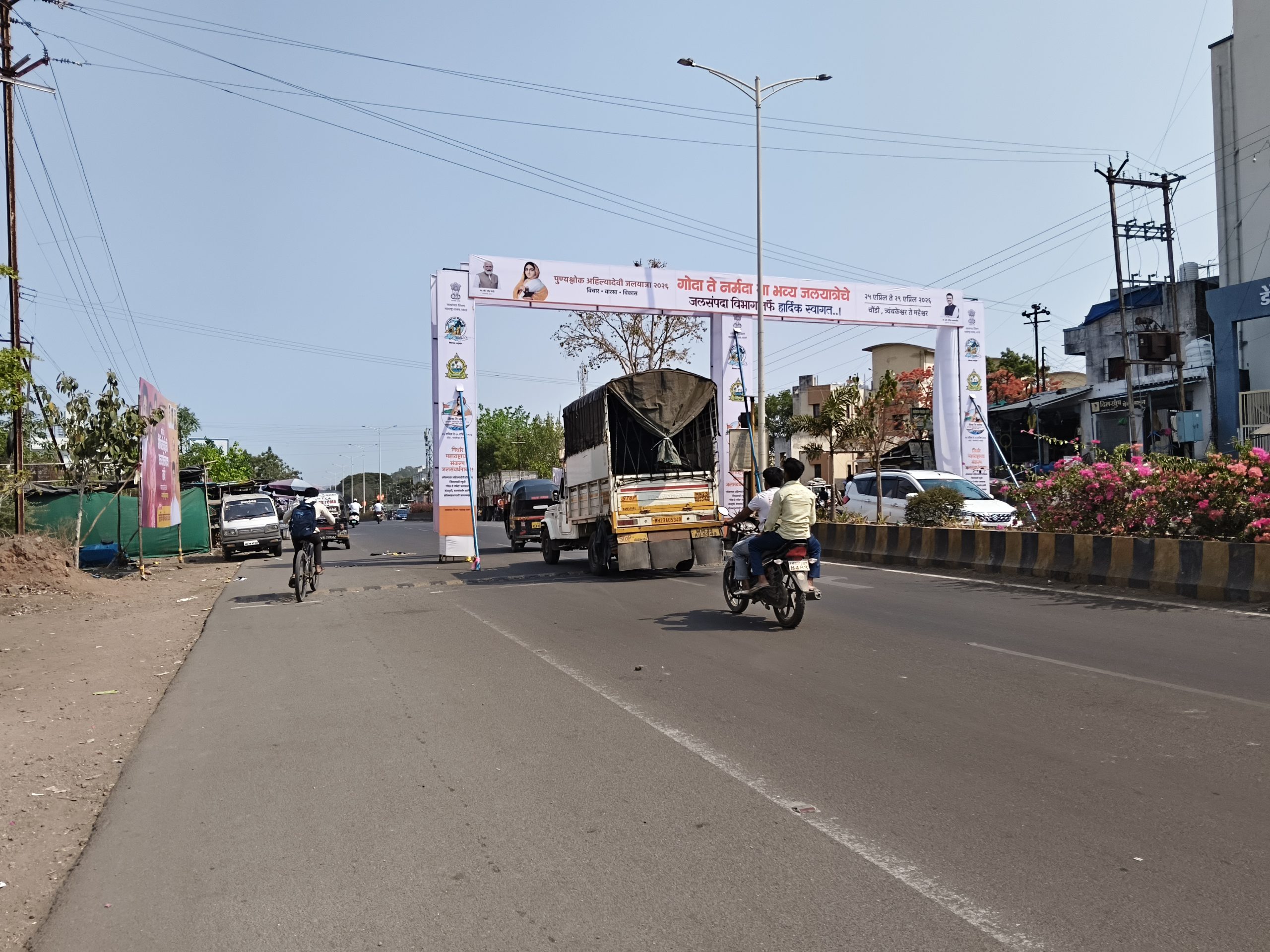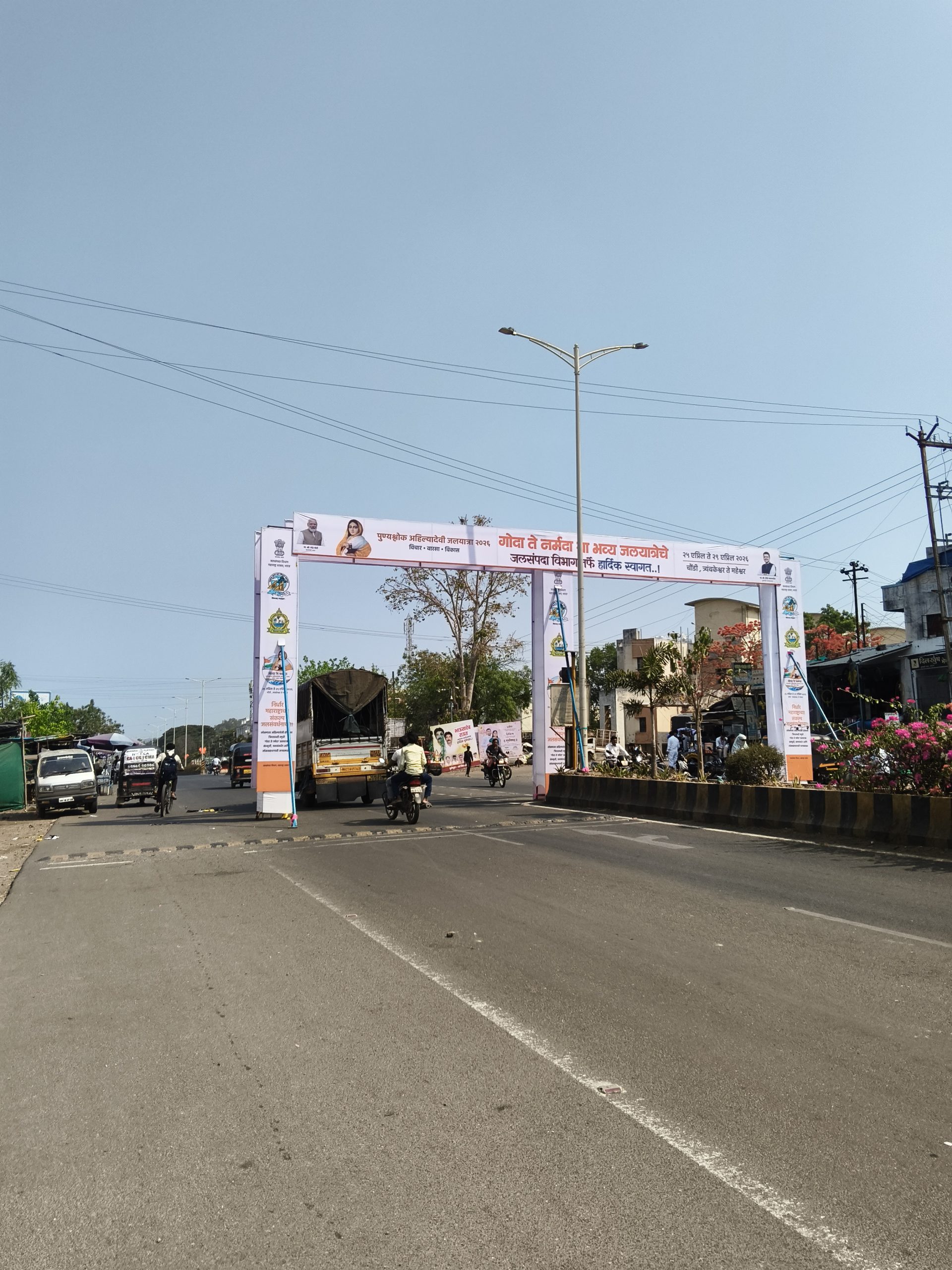 रस्त्याच्या मधोमध जाहिरातींची कमान, अपघातांना निमंत्रण