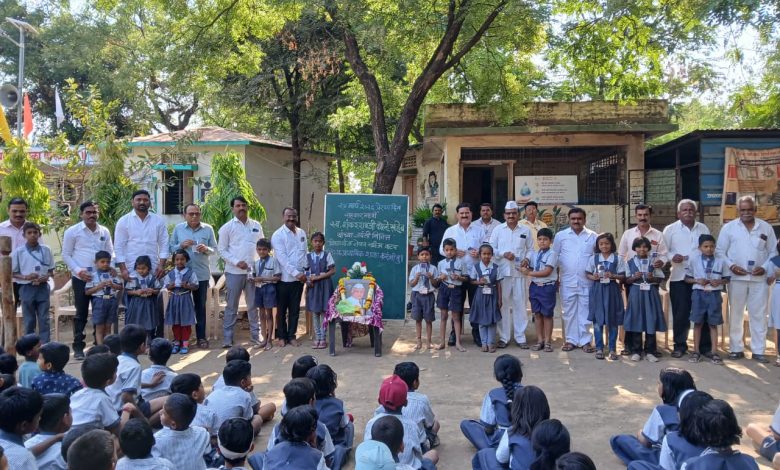 शालेय विद्यार्थ्यांना साहित्य वाटप करत करंजीत प्रेरणा दिन साजरा